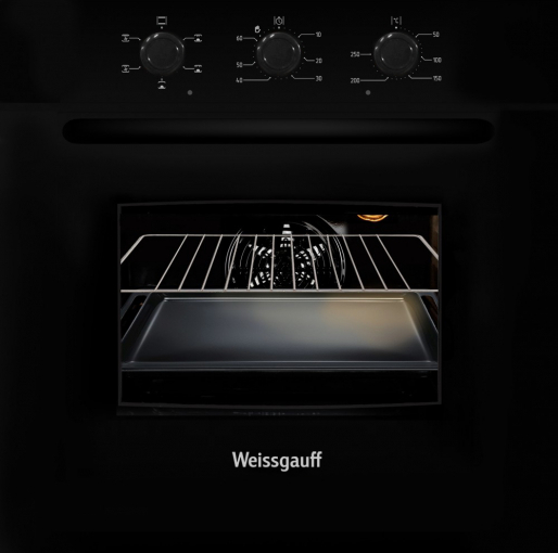 Электрический духовой шкаф от Weissgauff, выполненный в чёрном цвете с панелью из закаленного стекла, оснащённый 5 функциями приготовления и механическими поворотными рукоятками Soft Switch, двойным остеклением дверцы и таймером - это сочетание доступности и практичности в одном устройстве!