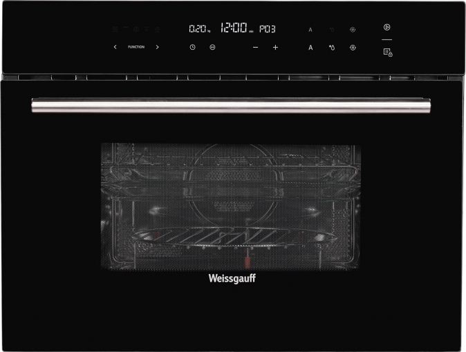 Компактный духовой шкаф с функцией СВЧ от Weissgauff, выполненный в чёрном цвете - это функционал сразу двух полноценных устройств, воплощённый в одной модели