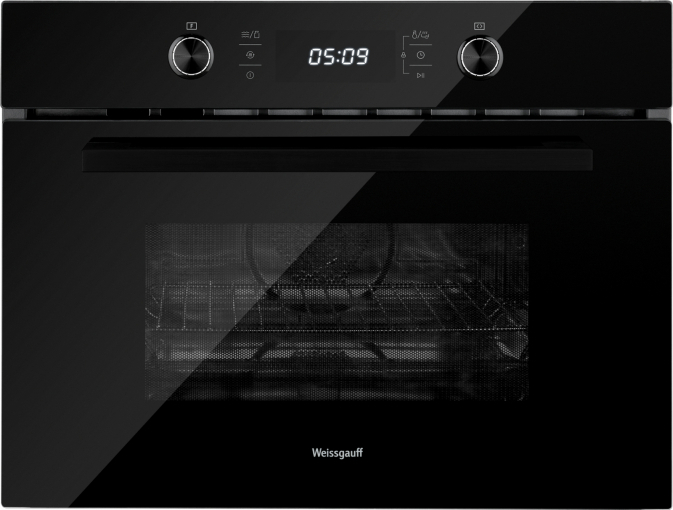 Компактный духовой шкаф с функцией СВЧ от Weissgauff, выполненный в чёрном цвете - это функционал сразу двух полноценных устройств, воплощённый в одной модели, оснащенной тройным стеклом в дверце и расширенной комплектацией!