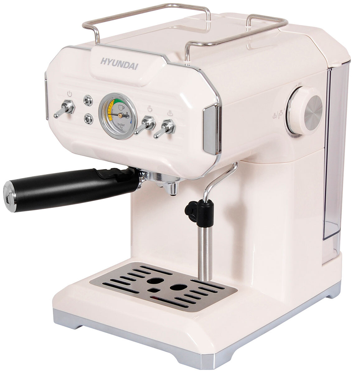 Кофеварка Hyundai HEM-5300 рожкового типа - современная модель, которая порадует пользователей ароматным и бодрящим кофе. Благодаря встроенным функциям, она легко заменяет профессионального баристу. Аромат и вкус молотого кофе полноценно раскрываются за счет гидравлического давления, нагнетаемого мощной итальянской помпой. Конструкция допускает одновременное наполнение пары чашек, а не одной. Управление механического типа. Ручной капучинатор способен приготовить молочную пену, впечатляющую воображение своей густотой. Нагревательный элемент в виде бойлера позволяет получать действительно горячий эспрессо. Кофейные кружки, которые требуется подогреть, следует ставить сверху. Специальный участок корпуса для них выделен и огорожен. Объем съемной емкости для воды равен 1,5 литрм. Встроена защита от перегрева.