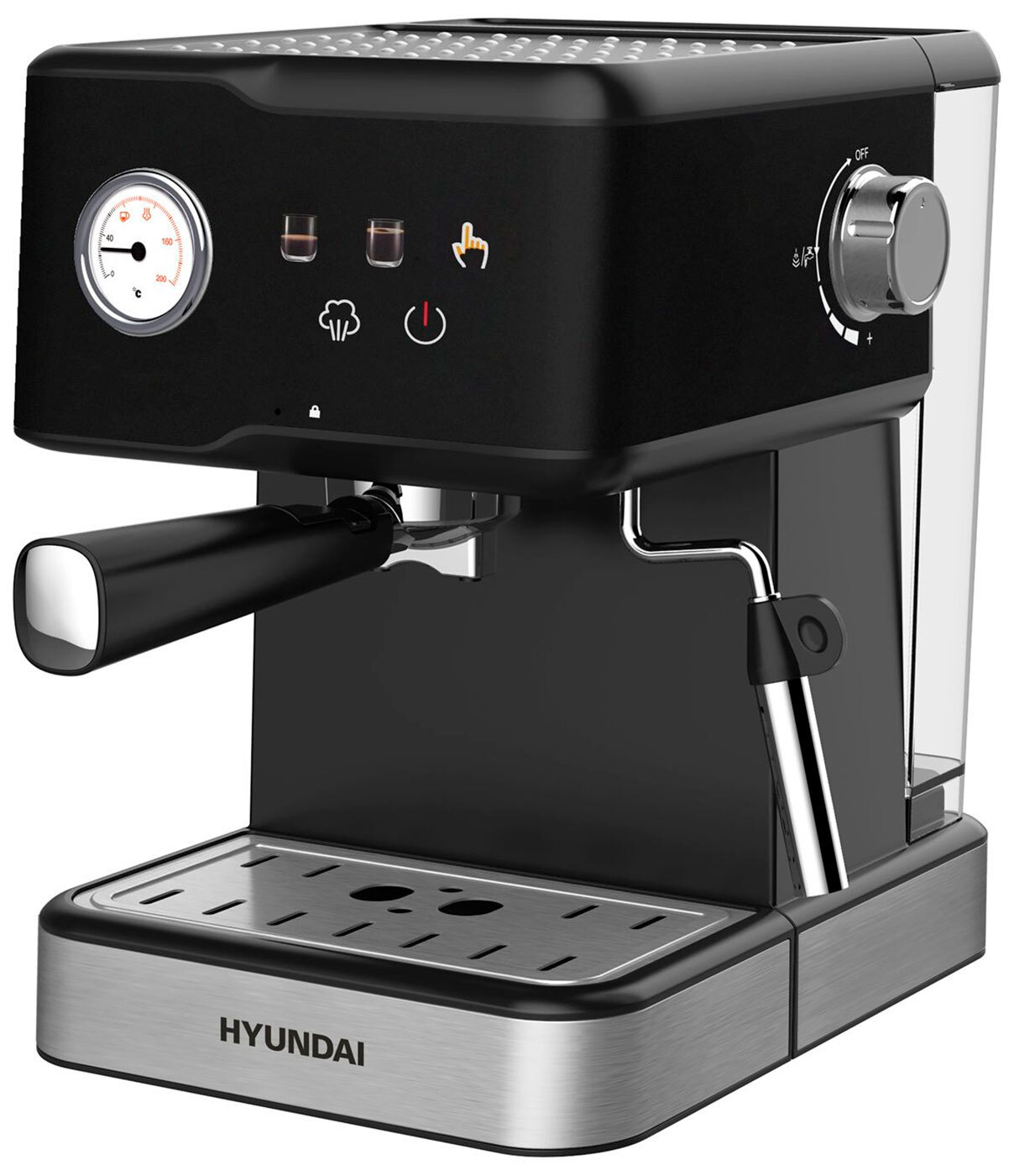Классический форм фактор с цветными иконками на сенсорном дисплее, а так же термометром для контроля температуры заваривания. Программы на 1 и 2 чашки, ручная программа для самостоятельного дозирования.