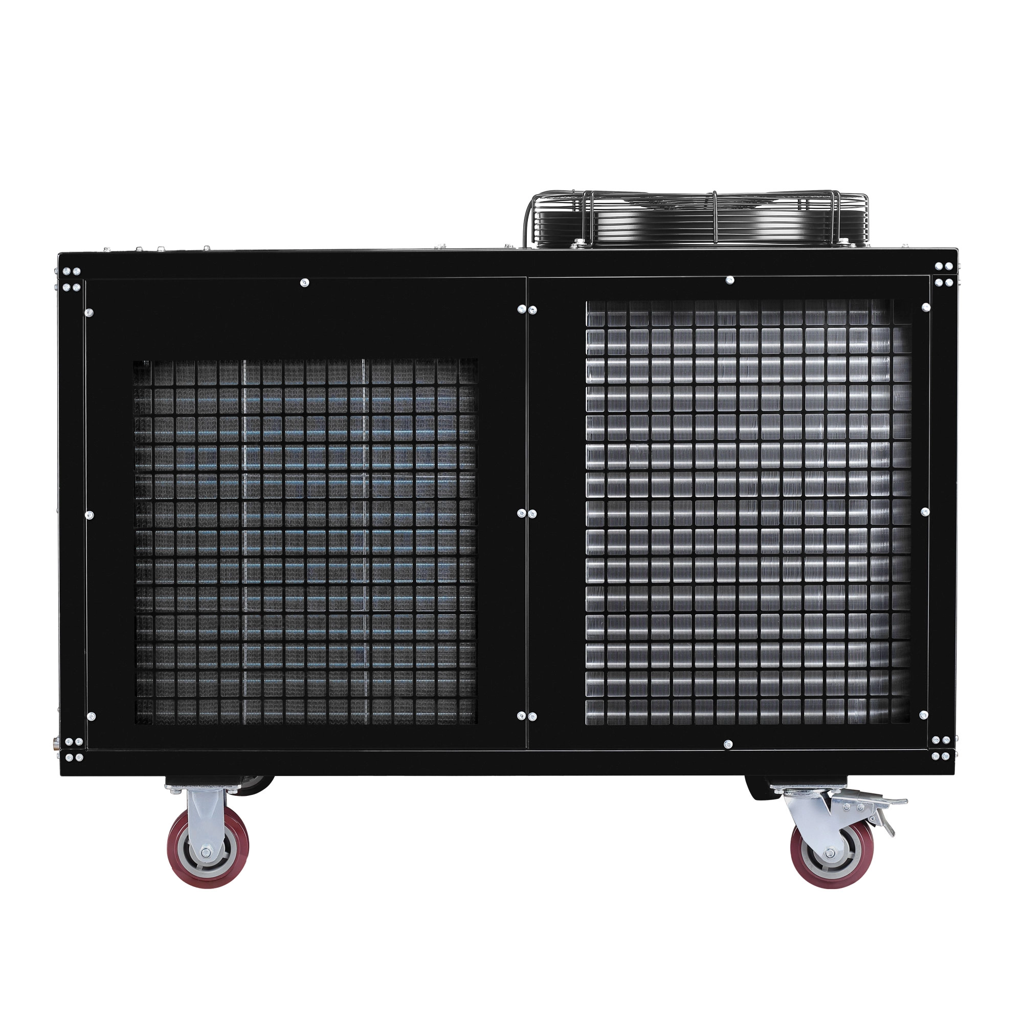 Промышленный мобильный кондиционер выполнен в металлическом ударопрочном корпусе, оснащен шасси и ручками для перемещения. Диапазон рабочих температур для такого оборудования – от +18 до +45°C.