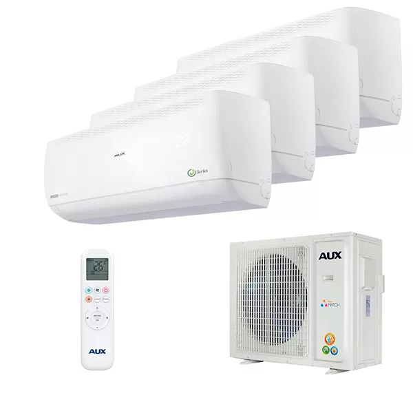 Мульти сплит-система AUX на 4 комнаты (20+20+20+20 кв.м.) серия J, представляет собой семейство современных высокотехнологичных мульти сплит-систем, оснащенных улучшенными комплектующими элементами и представленных в эргономичных высококачественных корпусах. Такое оборудование позволяет с минимальными затратами и нарушением внешнего вида зданий наладить комфортный климат сразу в нескольких помещениях.