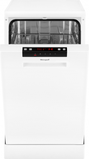Узкая отдельностоящая посудомоечная машина Weissgauff с полностью электронным управлением, двумя корзинами и вместимостью посуды до 9 комплектов - это не только экономия места на кухне, но и отличное качество мытья вашей посуды.