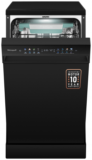Узкая отдельностоящая посудомоечная машина Weissgauff c корпусом, выполненным в черном цвете с инновационным цветным дисплем SMART SCREEN с сенсорным управлением, инверторным двигателем и функцией автоматического открытия дверцы, не только сэкономит место на вашей кухне, но и обеспечит идеальный результат: 3 корзины позволят расположить посуду оптимальным образом для достижения наилучшего качества мытья, а вместимость посуды до 10 комплектов - это не только экономия места на кухне, но и отличное качество мытья вашей посуды.