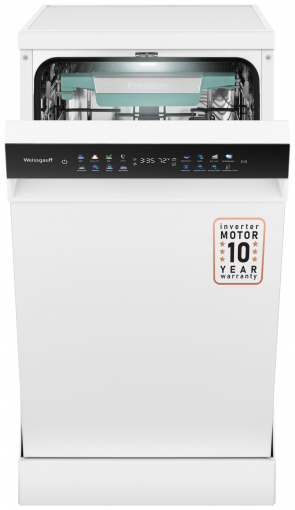 Узкая отдельностоящая посудомоечная машина Weissgauff c корпусом, выполненным в белом цвете с инновационным цветным дисплем SMART SCREEN с сенсорным управлением, инверторным двигателем и функцией автоматического открытия дверцы, не только сэкономит место на вашей кухне, но и обеспечит идеальный результат: 3 корзины позволят расположить посуду оптимальным образом для достижения наилучшего качества мытья, а вместимость посуды до 10 комплектов - это не только экономия места на кухне, но и отличное качество мытья вашей посуды.