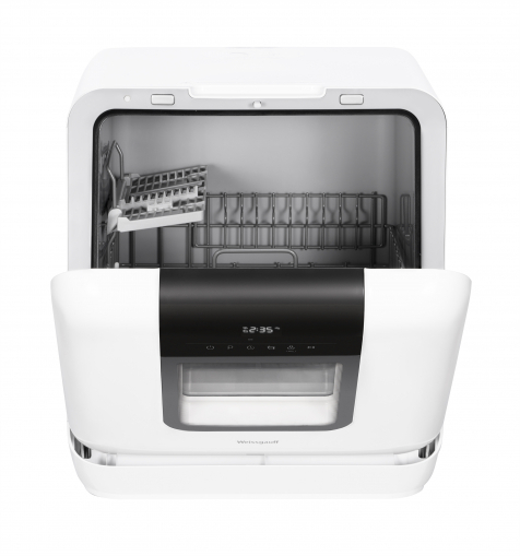 Компактная отдельностоящая посудомоечная машина MINI без необходимости подключения к водопроводу с функцией Hygiene 72°, сенсорным управлением и вместимостью 3 комплекта - это модель, которая отличается не только компактностью, но и совершенством технологической функциональности, которым так славится продукция Weissgauff!