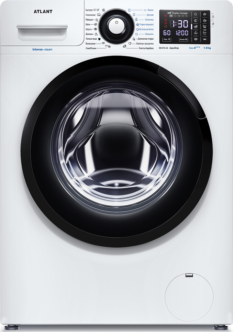 Стиральная машина ATLANT серии INTENSE STEAM с технологией обработки белья паром освежает, дезинфицирует и разглаживает белье благодаря новым режимам, включая программу «Освежить» и паровые опции «Стирка с паром» и «Обработка паром». Сенсорные технологии позволяют легко выбирать функции и программы, а светодиодные индикаторы и сегментный дисплей, расположенные под углом, облегчают восприятие информации. Просторный барабан вмещает значительное количество белья и предлагает множество программ для различных типов тканей. Антибактериальная защита ABG Technology подавляет размножение опасных микроорганизмов на уплотнителе, гребне и лотке для моющих средств. Также предусмотрена система защиты от протечек AQUA-STOP, обеспечивающая защиту как наливного шланга, так и корпуса.