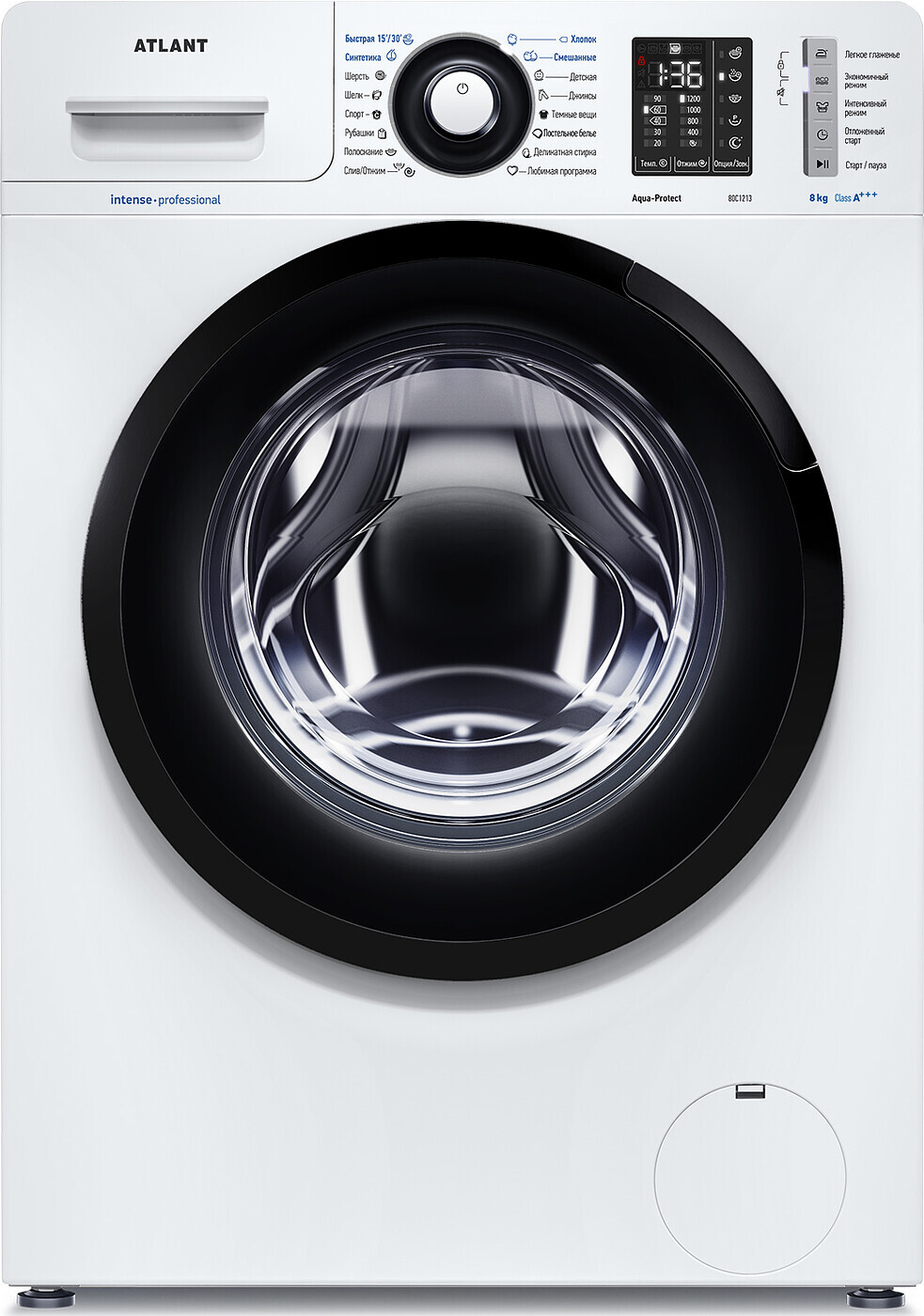 Новая стиральная машина ATLANT серии INTENSE PROFESSIONAL имеет уникальный дизайн, который прекрасно дополнит любой интерьер своим внешним видом. С помощью новых сенсорных технологий достаточно легкого касания для выбора функций и программ. Светодиодные индикаторы и сегментный дисплей машины размещены на панели управления под небольшим углом, что облегчает визуальное восприятие отображаемой информации о работе машины. Благодаря интеллектуальным программам она не только интуитивно понятна в управлении, но и обеспечивает превосходные результаты стирки при низком потреблении воды и электроэнергии. Кроме того, действует увеличенная гарантия 5 лет на двигатель.