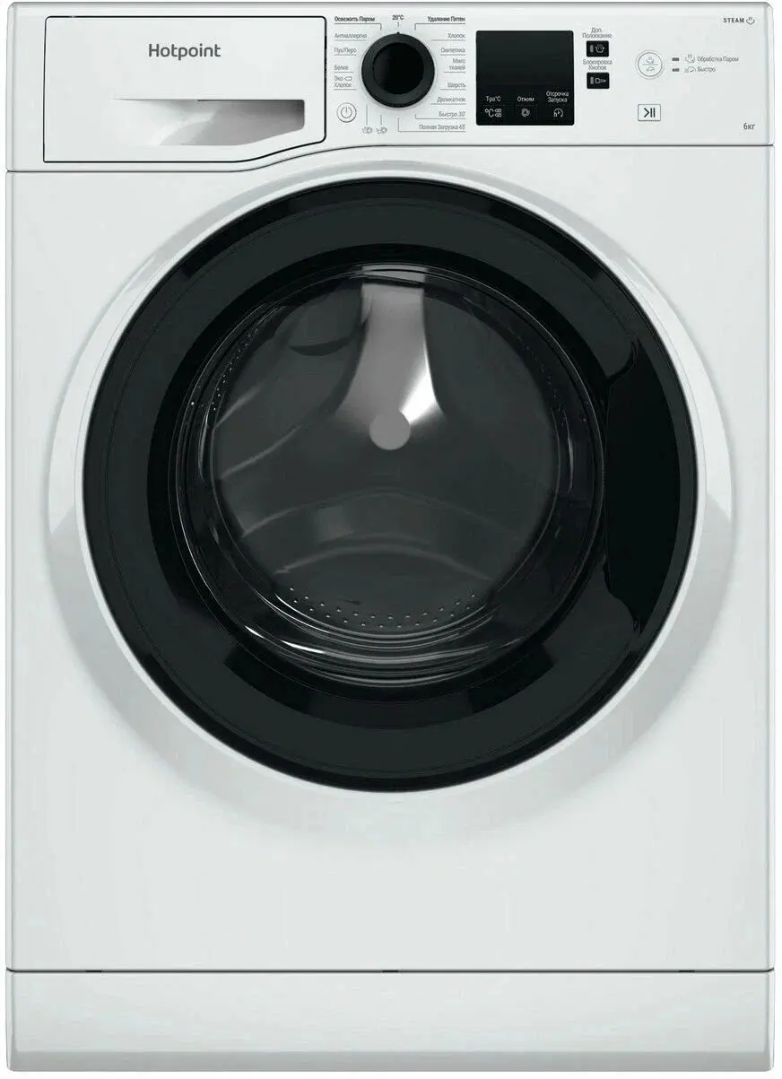 Узкая стиральная машина Hotpoint-Ariston NSS 6015 K V RU работает на основе коллекторного мотора и рассчитана на 6 кг белья. На один цикл прибору требуется 49 л воды и 1 кВт*ч. Прибор заключен в металлический корпус белого цвета и дополнен черной дверцей. Управление осуществляется электронно при помощи цифрового экрана, о выбранных режимах работы сообщит встроенная индикация и звуковой сигнал. Максимальный уровень шума не превышает отметку 83 дБ даже при отжиме скоростью 1000 оборотов в минуту. При габаритах 85х42,5х59,5 см вес составляет 59 кг. Модель поддерживает таймер для отложенного старта и защиту, блокирующую кнопки для предотвращения случайного запуска.