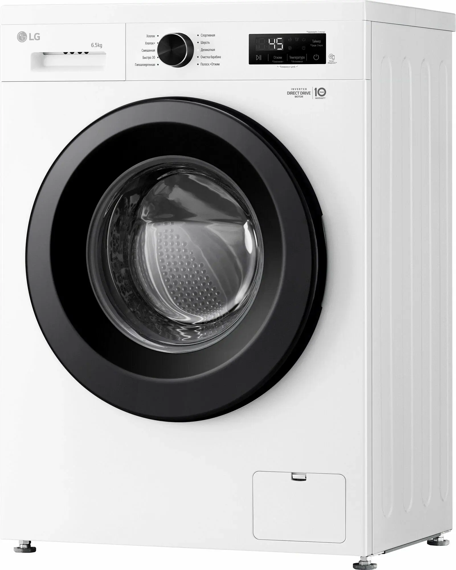 Стиральная машина LG F2Y1WS6W белый корпус, черный люк, фронтальная загрузка до 6.5кг, максимальная скорость отжима 1200об/мин, класс энергопотребления A, язык панели управления русский
