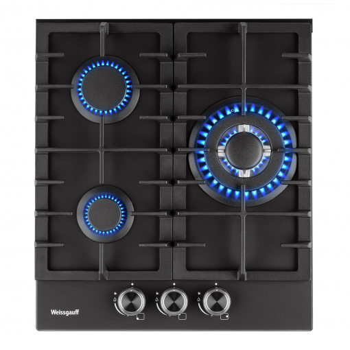 Встраиваемая независимая газовая панель Weissgauff шириной 45 см, исполненная в закалённом чёрном стекле - это стильное и компактное решение для вашей кухни!