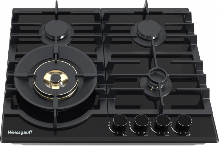 Встраиваемая независимая газовая панель Weissgauff шириной 60 см, оснащенная инновационной технологией WOK-конфороки Brass Burner, металлическими рукоятками, автоматическим электроподжигом и газ-контролем, исполненная в закалённом чёрном стекле - это по-настоящему эффективное и красивое решение для вашей кухни!