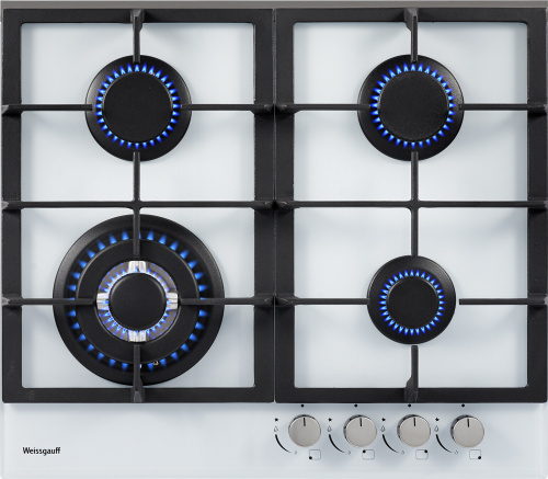 Варочная панель Weissgauff, оснащённая системой "Газ-контроль" и мощной WOK-конфоркой, создающей сразу 3 независимых контура пламени - это наиболее современная и функциональная модель Weissgauff, исполненная в белом закалённом стекле