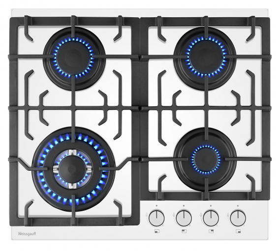 Встраиваемая независимая газовая панель Weissgauff шириной 60 см, исполненная в закалённом белом стекле - это стильное и компактное решение для вашей кухни!