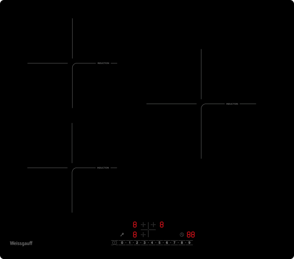 Индукционная панель Weissgauff с особым дизайном конфорок Cross-Zone и непрерывным нагревом выводит на новый уровень понимание того, насколько удобной и просторной может быть рабочая поверхность с тремя конфорками!