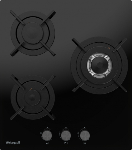 Встраиваемая независимая газовая панель Weissgauff шириной 45 см, исполненная в закалённом чёрном стекле - это стильное и компактное решение для вашей кухни!