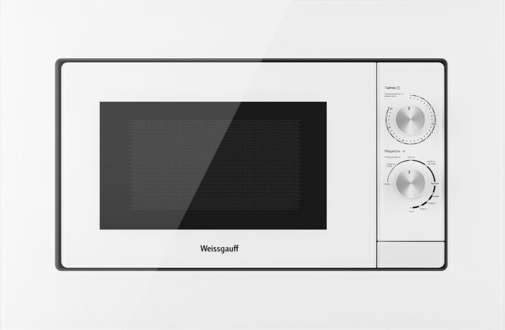 Встраиваемая микроволновая печь Weissgauff с объемом 20 литров, выполненная в белом закаленном стекле, равномерно разогревает еду при помощи поворотного стола, а также оснащена грилем с возможностью работы в комбинированном режиме!