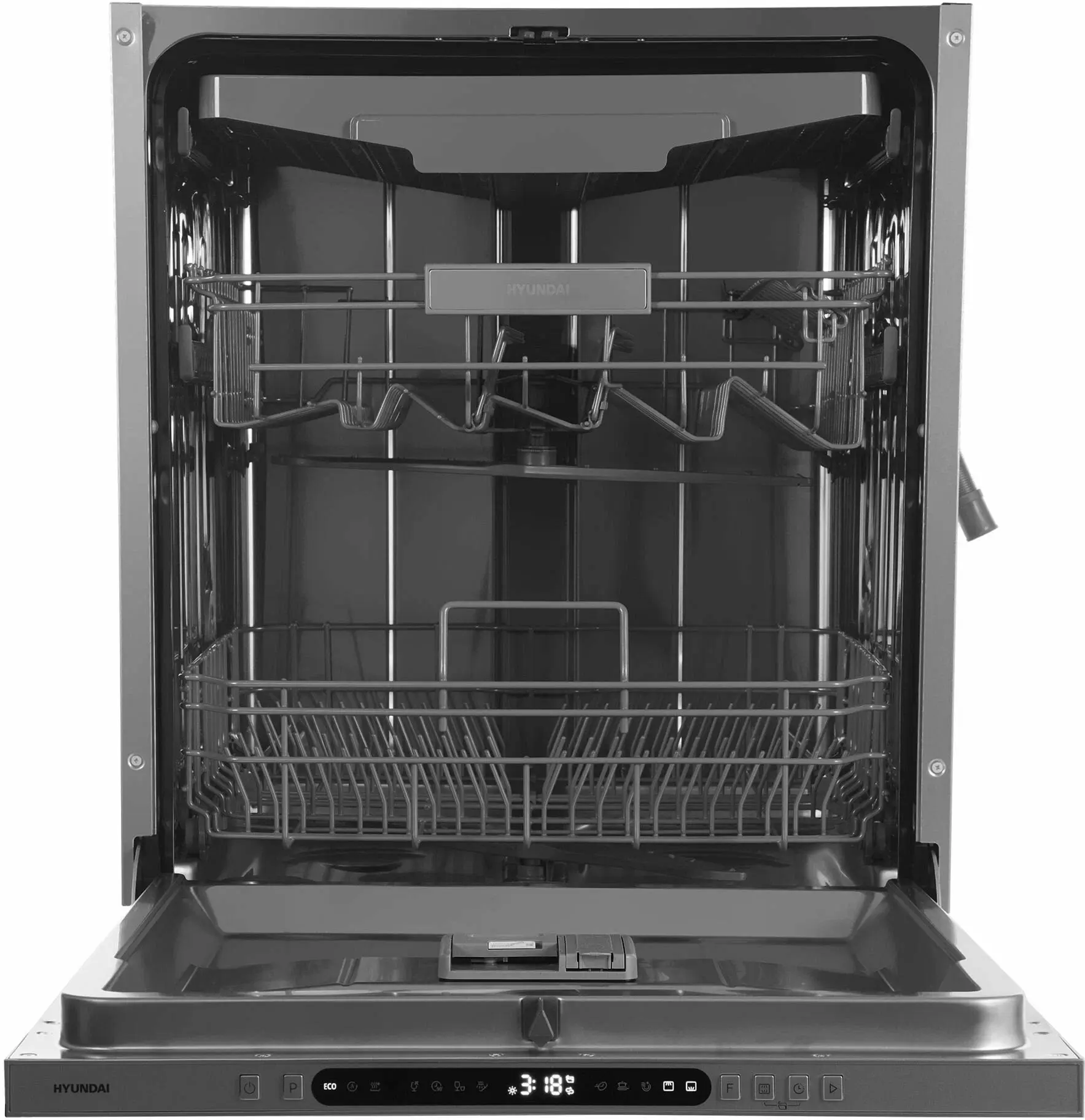Полноразмерная конструкция Hyundai HBD 678 вмещает до 14 комплектов посуды — идеально подходит для больших семей или тех, кто часто готовит и принимает гостей.