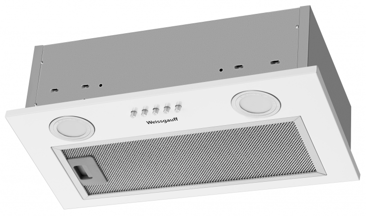 Полностью встраиваемая вытяжка от Weissgauff, воплощающая в себе безупречный дизайн и высокую эффективность, оснащена интуитивно понятным кнопочным управлением и выполнена в дизайне врезного блока с панелью стильного белого цвета!