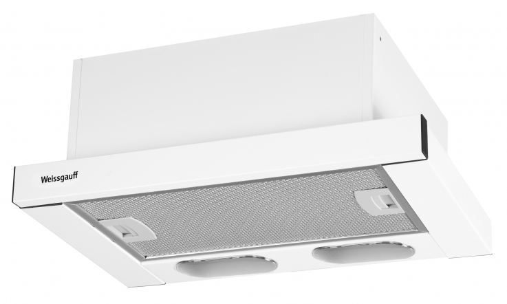 Встраиваемая в верхний подвесной шкаф телескопическая вытяжка от Weissgauff шириной 45 см, обладающая впечатляющей производительностью 600 м3/ч и низким уровнем шума 55 дБ, выполненная в белом цвете, не только порадует своей функциональностью, но и станет настоящим украшением вашей кухни!